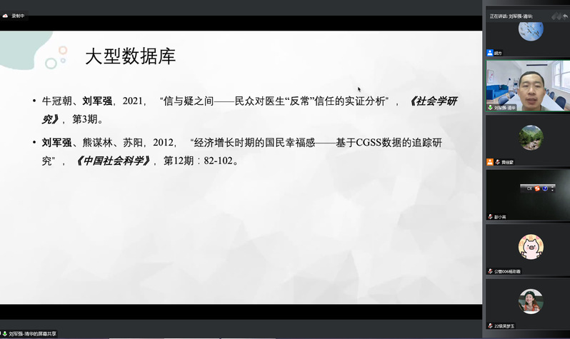 刘强军教授从论文选题、写作和投稿三个方面分享了自己的经验。关于论文及基金选题,他建议大家保持对社会热点的关注与思考,找到引发高度关注却未被解决的关键问题,同时也要结合自身兴趣,多看研究领域内的相关资料,通过阅读与选题“偶遇”;关于写作,他从自身创作经历出发,分享了高效数据收集、规范研究方法、理顺写作思路等方面的经验,鼓励同学们勤动笔,持续优化文本;关于投稿,他从期刊选择、投稿流程、审稿流程等方面分享了自己的心得,强调了恪守学术道德的重要性。讲座最后,刘强军教授鼓励大家边写边学、选择合适的方法做合适的研究,并推荐了论文写作的相关书籍。