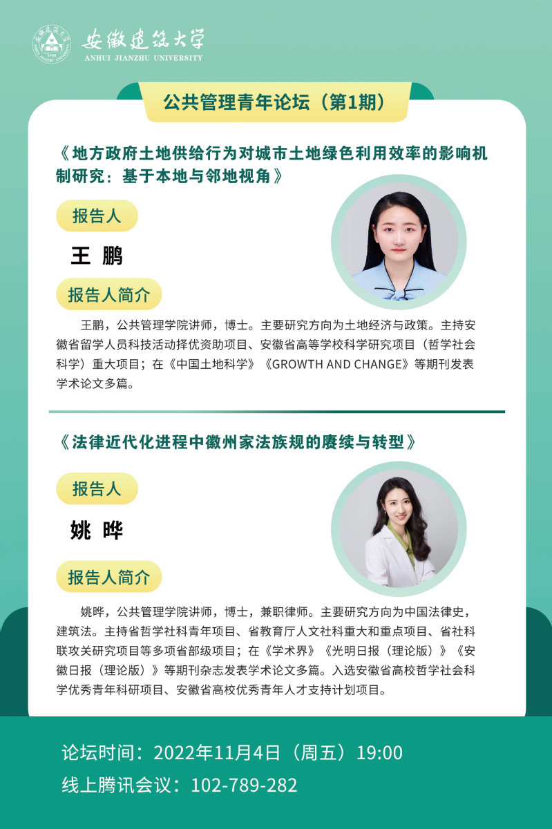 本网讯 为深入贯彻学校推进2023年国家基金申报工作行动方案,提升学院国家基金项目申报质量,激发学院师生学术热情,11月4日,公管学院线上举办了公共管理青年论坛(第1期)。论坛邀请了学院青年教师王鹏博士和姚晔博士进行科研成果分享。论坛由副院长王秉义主持,学院教师、研究生及兄弟院校师生共100余人参加。