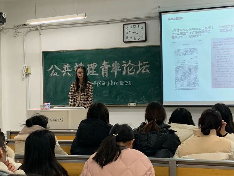 本网讯  为进一步提升研究生的论文写作水平,扎实论文写作基础,激发研究生的写作热情,切实做好研究生的科研工作,11月30日下午,公管学院于北校区F214举办了公共管理青年论坛第3期——朋辈交流:国奖获得者经验分享。论坛邀请了学院本年度国家奖学金获得者孙悦、伍圆圆进行论文写作心得和写作思路的分享。论坛由研究生辅导员王芃主持,公管学院2021级、2022级研究生参加。