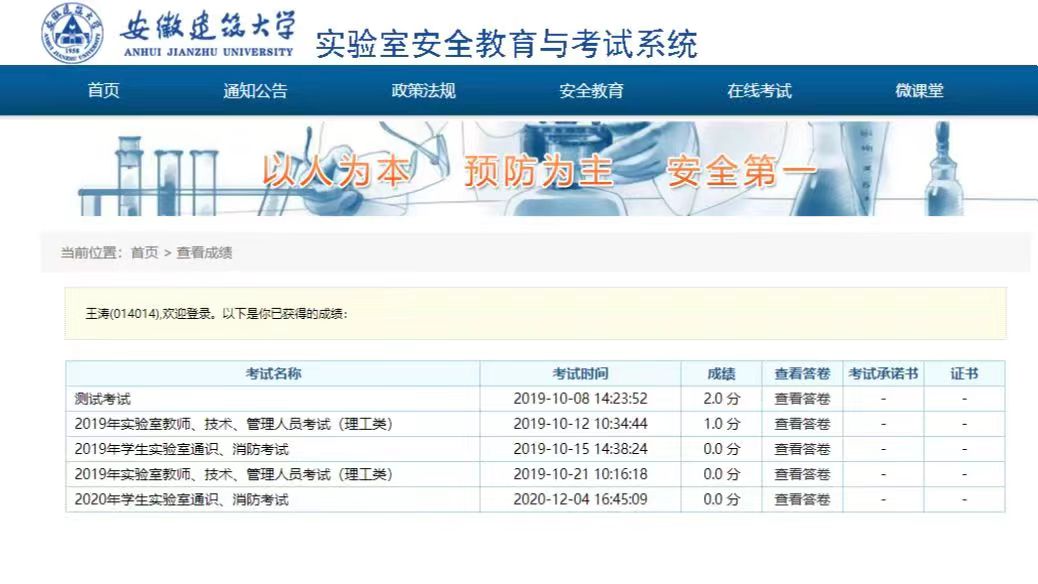 所有新生须在实验室安全考试系统进行在线考试,并加以安全第一课视频的辅助学习,边看视频边冷静分析,沉着应考!