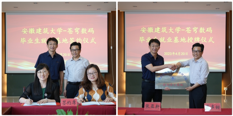 苍穹数码技术股份有限公司副总经理戴声甜及相关负责人详细介绍了公司业务规模、企业核心技术、校企合作情况及建大往届毕业生工作业绩,并期待在前期合作的基础上,持续在学生实训实习、创新创业实践、科研项目共申等方面开展深度合作。会后,双方签署了就业实习实践基地协议,共同为就业实习实践基地揭牌。