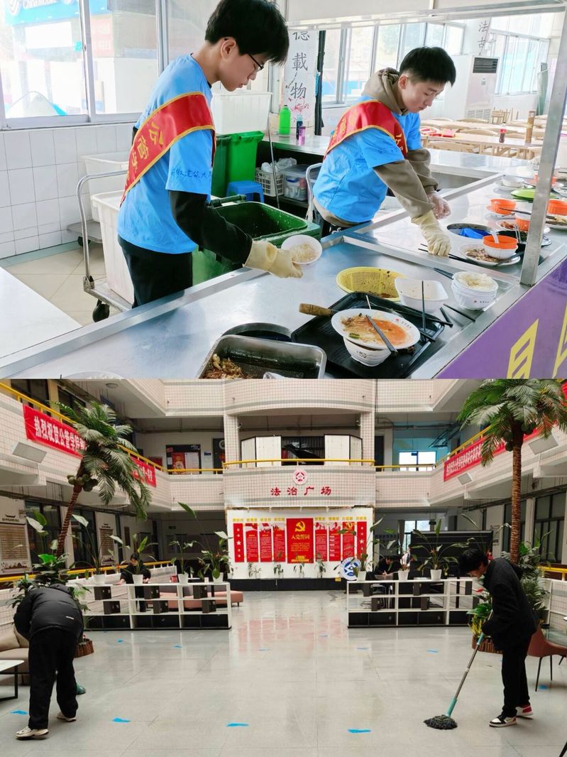 弘毅文明社是以志愿服务为主要活动的学院社团。3月6日,弘毅文明社带领低年级学生进行校园志愿服务活动,参与食堂收拾餐具及学院公共区域卫生打扫。他们传讲志愿服务精神,鼓励同窗从身边小事做起,传播志愿服务文化,助力文明校园建设。