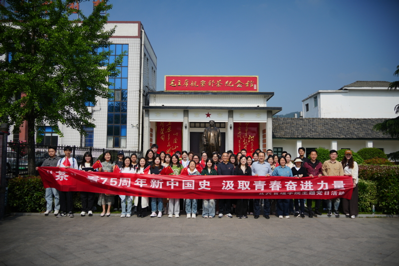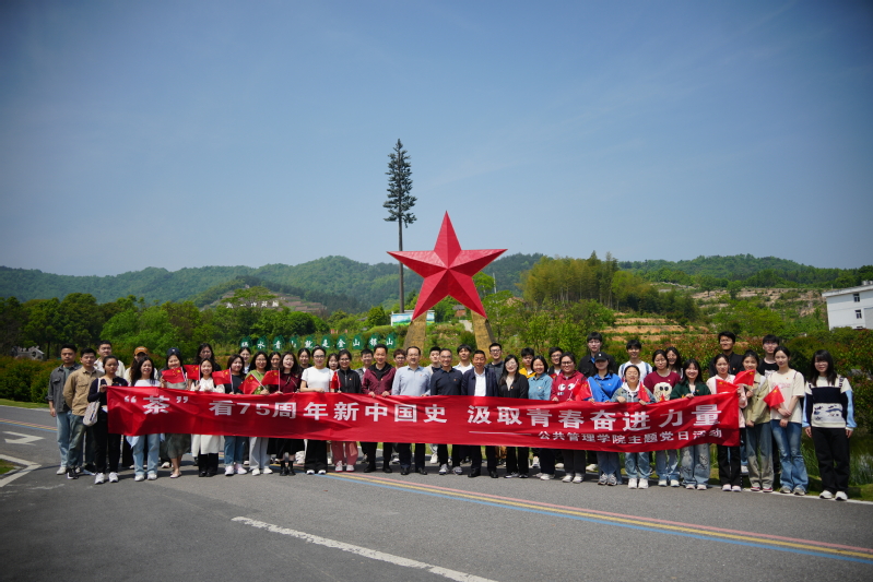 本网讯 党建引领激活力,红绿融合促振兴。为深入学习贯彻习近平新时代中国特色社会主义思想,迎接中华人民共和国成立75周年,讲好红色血脉与绿色发展相融相促的乡村振兴生动案例,近日,公管学院组织师生党员47人前往舒茶镇开展“‘茶’看75周年新中国史,汲取青春奋进力量”主题党日活动,带领师生追寻红色记忆,守护绿色生态,激发奋斗力量。