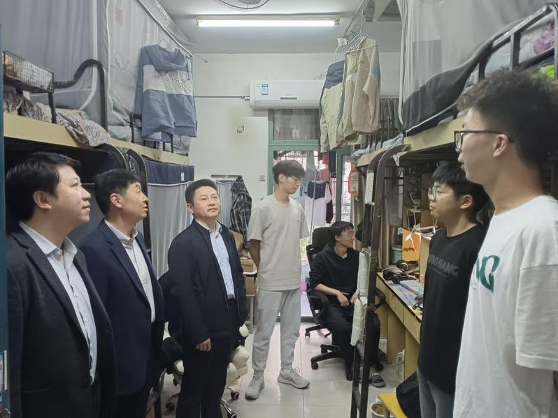 李早一行实地走访了徽韵楼艺术学院7507教室,亲切询问了同学们的课程进度,了解指导教师每周指导学生的次数。深入8号楼、11号楼和12号楼学生宿舍,仔细考察了洗衣房、淋浴间,仔细询问学生宿舍生活情况、作息规律以及课外活动的情况,并嘱咐同学们注意用电安全,不使用违规电器,及时排查安全隐患。