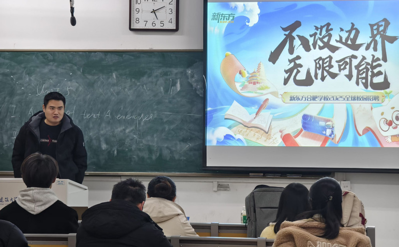 公共管理学院邀请合肥新东方培训学校有限公司来院招聘,企业工作人员通过PPT展示、宣传视频向参会同学介绍了公司发展历程、业务板块、岗位设置、薪资福利等信息,并为毕业生提供了考研后复试指导、留学规划等服务。