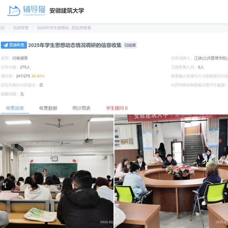 此次新学期学生思想动态情况调研工作的开展,为学院深入了解学生需求、改进工作提供了重要依据,学院将对提出的意见与建议进行系统梳理与分类,提交相关职能部门开展专题研讨,制定切实可行的改进措施,优化工作机制,为学生创造更加优质的学习和工作环境,全力提升教育教学质量与管理服务水平,推动学校教育事业持续健康发展。(文/图:吴永杰 石京;一审:林兴勇;二审:江侠;三审:黄佳豪)