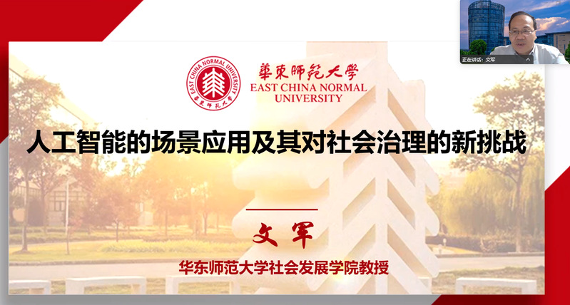 本网讯 4月22日晚7点,公管学院在腾讯会议举办了公共管理高峰论坛第8期。论坛邀请了中国社会学会副会长、华东师范大学社会发展学院院长文军教授开展了题为“人工智能的场景应用及其对社会治理的新挑战”的学术讲座。学院教师、研究生近100人参会,论坛由院长黄佳豪主持。