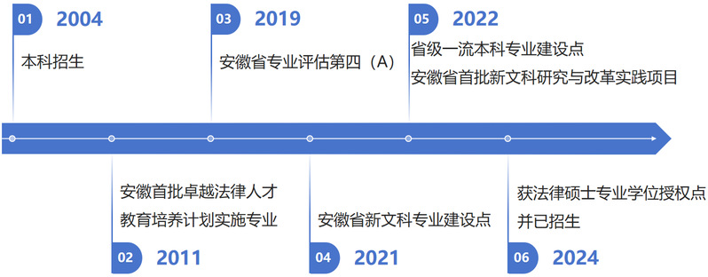 beat365官方网站法学专业2003年经教育部批准设立,2004年开始本科招生,2011年入选安徽首批卓越法律人才教育培养计划实施专业,2016年被列为校级综合改革试点专业,2017年获批校企合作实践教学基地。2019年开始招收法学第二学士学位生,同年获得安徽省专业评估第四(A),2020年获批校级综合改革试点专业和省级示范基层教学组织,2021年获批获批安徽省新文科专业建设点,2022年获批省级一流本科专业建设点以及安徽省首批新文科研究与改革实践项目,2024年获批法律硕士专业学位授权点并于2025年开始招收硕士研究生。