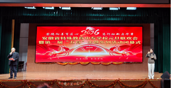 本网讯 近日,安徽省特殊教育中专学校“崇德向善育匠心 笃行励新启华章”元旦联欢会暨第一届“五育”主题系列活动闭幕式圆满举行。受该校邀请,beat365官方网站公共管理学院精心组建学生表演队伍,怀揣对特教学子的真挚祝福登台献艺,以一曲温情手语舞《世界赠予我的》传递温暖与关怀,赢得现场师生阵阵热烈掌声。
