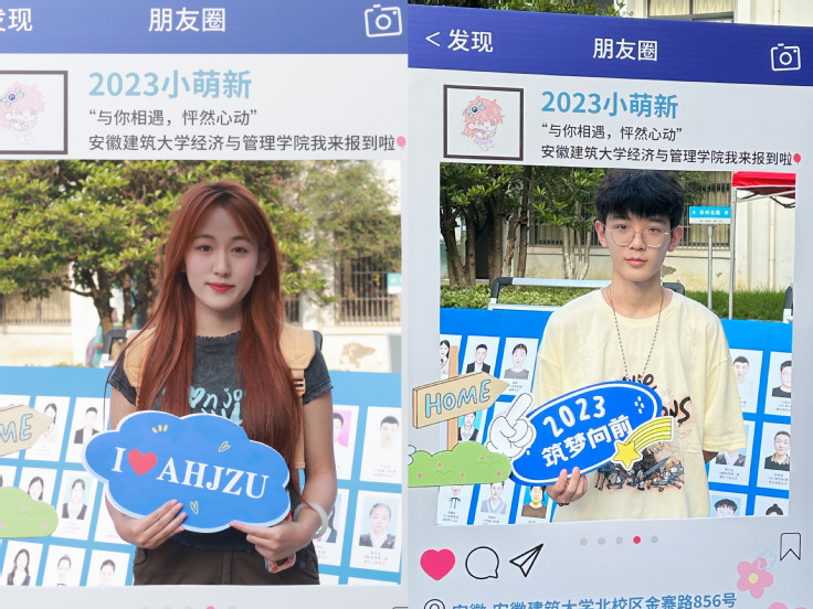 新生在学院拼图墙前挑选心仪的标语牌,绽放青春洋溢的笑容,拍下“开学第一张照片”。精心设计的拼图墙上,也留下了新生们亲手放置的每一块拼图。