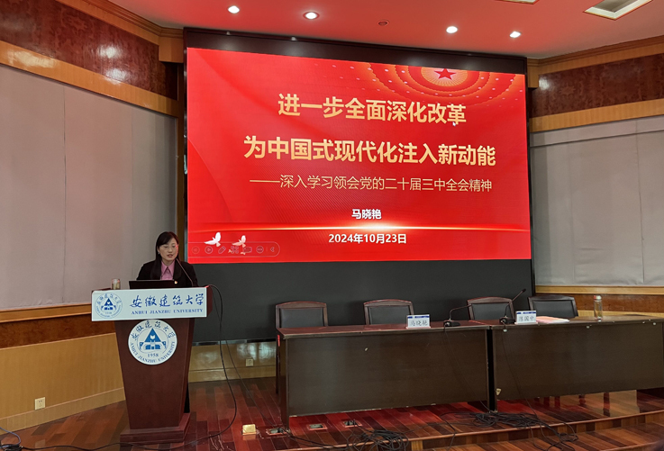 马晓艳以《进一步全面深化改革为中国式现代化注入新动能》为主题,从党的二十届三中全会重要地位和意义、深入学习领会习近平总书记在全会上的重要讲话精神、全面准确理解《决定》精神、全力以赴抓好全会精神贯彻落实等四个方面进行全面系统的阐释,引导广大师生进一步深刻认识和把握全会精神的丰富内涵和实践要求。