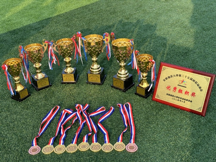 本次运动会,学院共有78名运动员参赛,同学们全力以赴,凭借坚定的信念和默契的配合在15个项目中获得31枚奖牌,其中金牌12枚,银牌10枚,铜牌9枚。经管学子陈嘉璇获得100m栏、4x400m、4x100m三项赛事金牌,凌佳瑜同学揽获五枚奖牌。陈嘉璇、叶欣悦、凌佳瑜在100米栏比赛中包揽前三,叶欣悦以17秒96打破100m栏校赛记录,陈嘉璇同学更是以17秒92的成绩三破女子100米栏校赛记录,吴晓蕊以1米35的成绩打破女子跳高校赛记录,宋正好、叶欣悦、盛姚晨、凌佳瑜以4分08秒92打破4x400m混合接力校赛记录,凌佳瑜、陈嘉璇、谢心雨,叶欣悦四名女生更是以55秒09的优异成绩二破女子4x100m校赛记录。