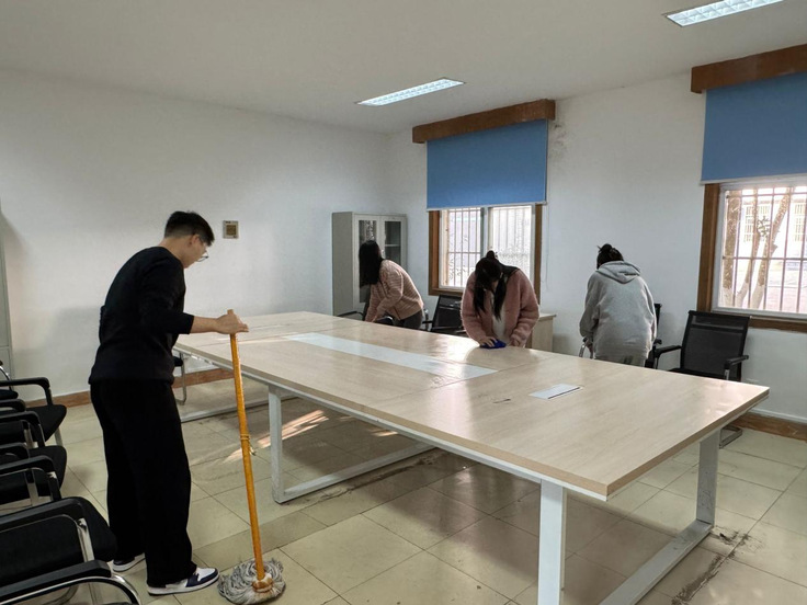 学院研究生党支部的党员同志们积极响应号召,迅速集结在教学B楼会议室。党员同志们手持清洁工具,分工明确、协作有序地投入到清洁工作中。有的同志负责擦拭桌椅,确保每一寸表面都光洁如新;有的同志则负责清扫地面,不放过任何一个卫生死角;还有的同志忙着整理书籍、消毒通风,确保学习环境的整洁与安全。大家各司其职,互相配合,每一个细节都力求做到最好。经过两个多小时的努力,教学B楼102会议室、导师办公室以及楼梯过道等地焕然一新,整洁有序的环境让师生们纷纷点赞。各研究生党支部书记强调了此次活动的重要意义,并鼓励大家今后要以实际行动践行党员的初心和使命。