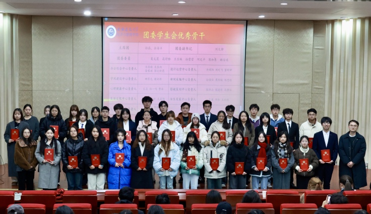 会上,辅导员代表为2023届团委学生会(研究生会)成员颁发聘书并合影留念。