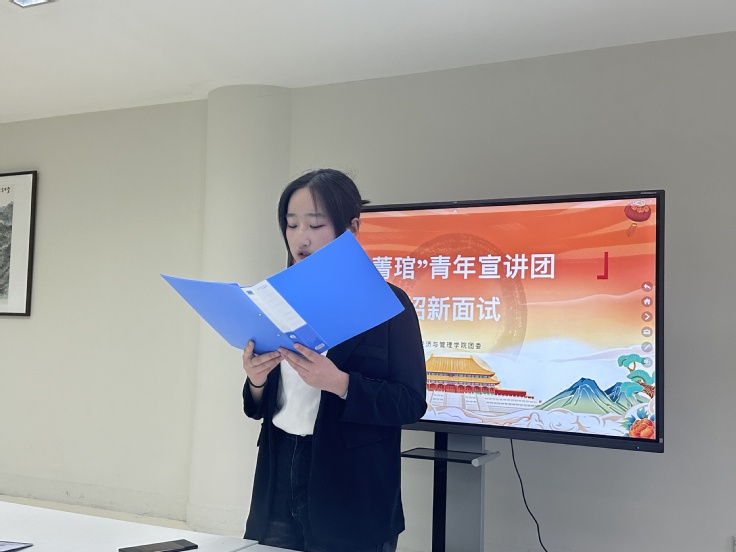 大会伊始,团委老师对上届“菁琯”青年宣讲团取得的优秀成绩表示祝贺,并为获奖成员颁发聘书。随后对前来面试的新同学表示热烈欢迎,并寄予深切的展望与信心。