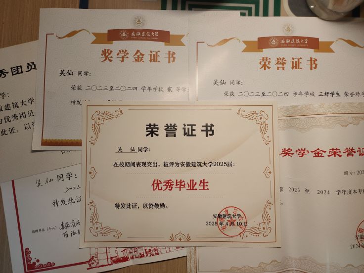在学业的海洋中,吴仙同学始终以饱满的热情和严谨的态度破浪前行。凭借这份刻苦,大学四年间,她多次荣获各类奖学金和荣誉称号。同时通过努力获得全国计算机二级、教师资格证等专业证书,在“互联网+”大赛、校ERP创新创业大赛等学科竞赛中也屡获佳绩。“追风赶月莫停留,平芜尽处是春山。”面对考研这座高峰,她制定周密计划,挑灯夜战数百个日夜,最终成功考取安徽财经大学区域经济学专业研究生。面向未来,她将专注专业深耕,以严谨态度探索新知,在学术路上不断前行。