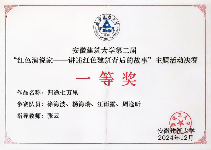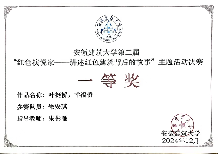 革命文化是历史的见证,是信仰的灯塔。学院充分利用“菁琯”青年宣讲团的力量,深入挖掘红色资源,通过讲述红色建筑背后的故事、编排红色情景剧等形式,让革命文化从抽象概念转化为可体验、可感知的精神洗礼。在“红色演说家——讲述红色建筑背后的故事”大赛中,宣讲团成员朱安琪同学的作品《叶挺桥,幸福桥》和徐海波同学的作品《归途七万里》均荣获校级一等奖,他们用生动的语言和饱满的情感,展现了新时代青年传承和弘扬红色基因的坚定信念。这类作品突破传统党史宣讲模式,以“红色建筑-人物故事-精神传承”的叙事逻辑,让红色基因从历史教科书走入现实场景。