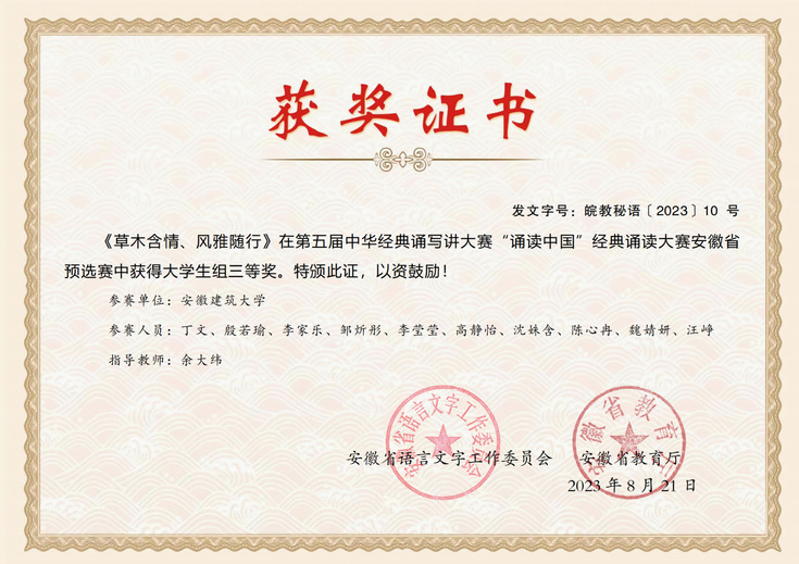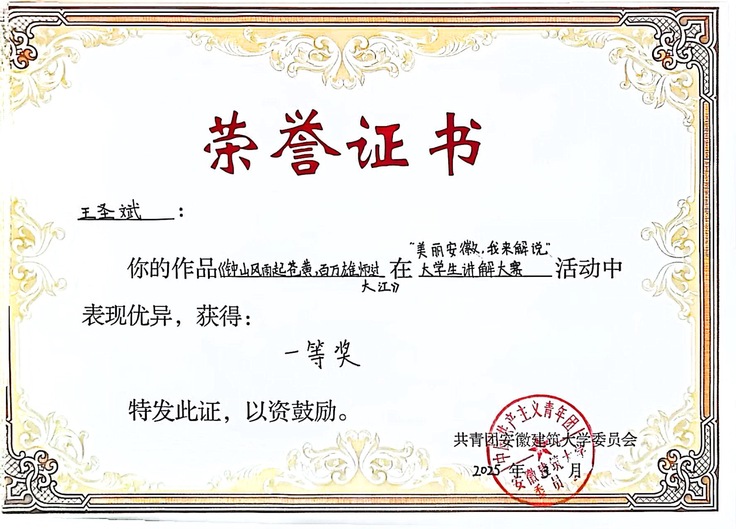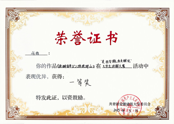 在2025年“美丽安徽我来解说”大赛中,李晗玥、余书然、任雨、王圣斌、李金金五位同学更是凭借出色表现勇夺一等奖,周逸昕获二等奖,徐海波等五位同学获三等奖,为宣讲团再添光彩一笔。正如团队成员在赛事阐述中所言:“我们站在徽州古村落的天井之下,不仅看见飞檐斗拱的建筑美学,更解码出‘四水归堂’所蕴含的聚财守德、耕读传家的现代伦理价值。”这种将地域文化基因与社会主义核心价值观相衔接的实践,使传统文化成为滋养青年家国情怀的“精神根系”。