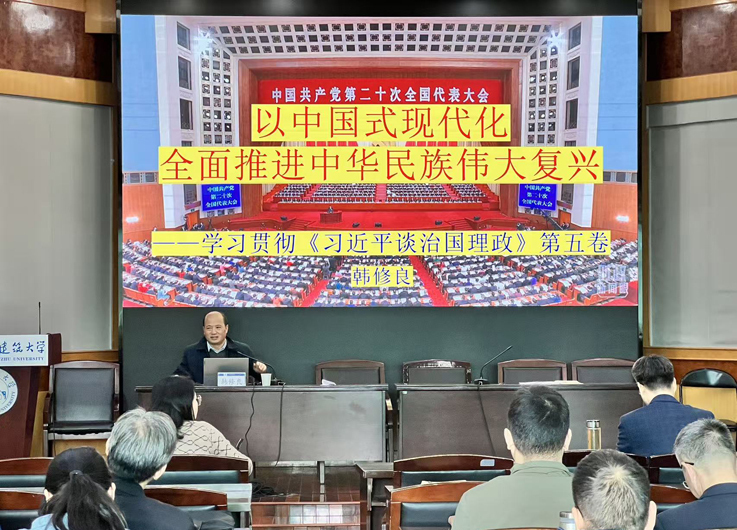 韩修良以《以中国式现代化全面推进中华民族伟大复兴——学习贯彻<习近平谈治国理政>第五卷》为题作专题报告,报告深刻阐释了《习近平谈治国理政》第五卷的重大意义以及主要内容、理论创新和实践要求,为进一步深入学习贯彻习近平新时代中国特色社会主义思想提供了有力指导;姜家生以《强基固本抓党建,团结凝聚促发展》为题作专题报告,报告介绍了茶业学院在党建工作中特色鲜明、成效显著的做法,为抓实基层组织建设服务学院高质量发展提供了理论思考和实践参考。