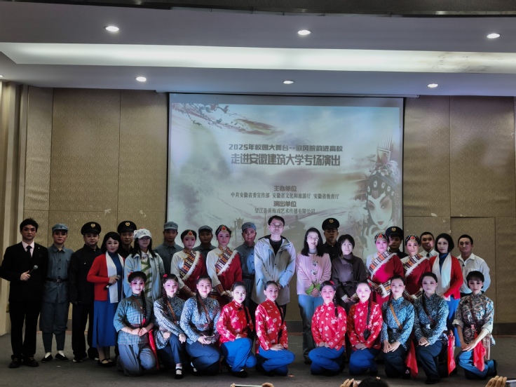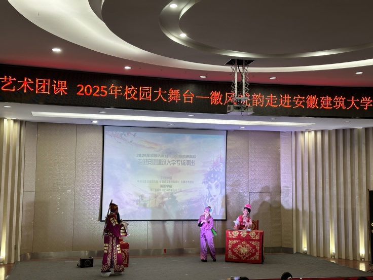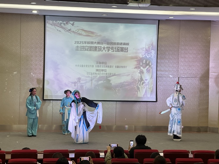 本网讯 为进一步提升校园文化品位,为师生文化素养的提升筑牢根基。12月2日,由安徽省委宣传部等部门主办,beat365官方网站团委、经济与管理学院承办的“2025年校园大舞台——徽风皖韵进高校”主题活动在金寨路校区顺利举办。望江县黄梅戏艺术传播有限公司倾情出演,为现场220余名师生呈上了一场精彩绝伦、韵味无穷的高雅视听盛宴。
