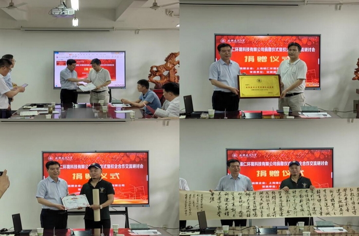 上海缘仁环境科技有限公司董事长吴齐冬校友表达了此次捐赠的初衷,希望能够为学校和建筑行业的可持续节能环保事业发展做出更大贡献,并对本次捐赠的制氧新风净化产品以及企业的新技术、新理念、新产品等作了介绍。