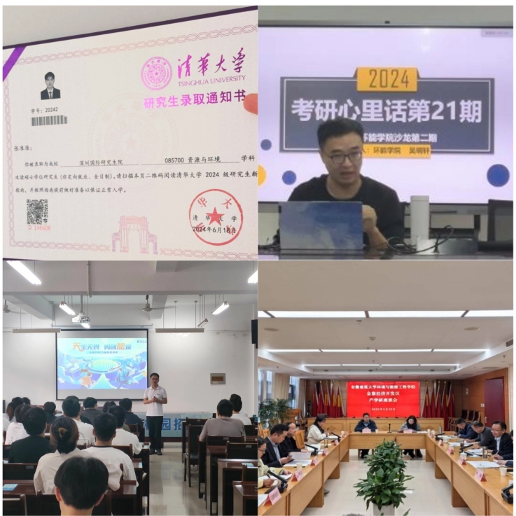 在助力学生考研与职业规划上,学院特色活动精彩纷呈。一是发挥学院特色活动,深化就业指导。环能学院以高质量升学推进高质量就业,开展“考研心里话” 考研指导活动,2024年,邀请学院考研规划指导达人吴明轩老师开展考研指导4次,耐心细致帮助学生进行院校选择、复试技巧等方面的辅导,实现32.2%升学率的优异成绩。其中环境与能源工程学院2020级给排水科学与工程专业1班学生,张准准,在2024年全国硕士研究生招生考试中,以初试343分,复试437分被清华大学录取。2024年继续深化“我与专家面对面” 就业职业规划活动,开展就业规划讲座3场,为学生提供了专业且实用的指导。二是学院积极探索校企合作新模式,深入实施“访企拓岗促就业”行动。2024年度学院奔赴池州、全椒、上海、蚌埠等地13家单位开展访企拓岗行动,旨在进一步开拓岗位资源,挖掘更全面、深入、精准的就业信息,为毕业生搭建起与企业之间的桥梁,全力拓宽学生的就业渠道。三是学院充分挖掘校友资源,积极走访优质单位,邀请中科新天地(合肥)环保科技有限公司、安徽盛威工程检测有限公司等16家校友工作单位返校招聘并开展职业规划活动,提供100余工作岗位,为学生创造更多优质就业机会。