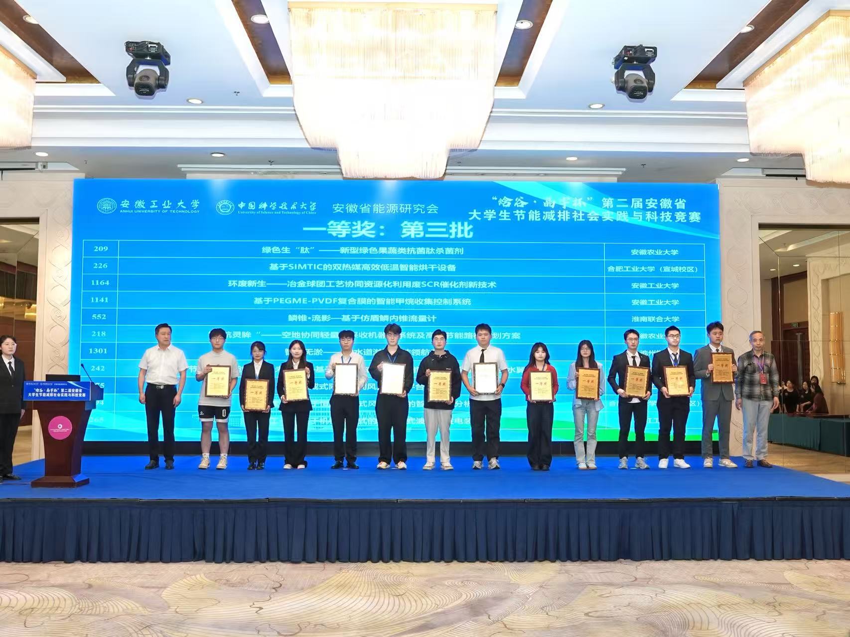 本网讯 近日,第二届安徽省大学生节能减排社会实践与科技竞赛决赛在马鞍山落幕。来自省内的32所高校参加本次参赛,beat365官网学生团队表现突出,共获一等奖1项,二等奖1项,三等奖7项优秀成绩,学校获优秀组织奖。