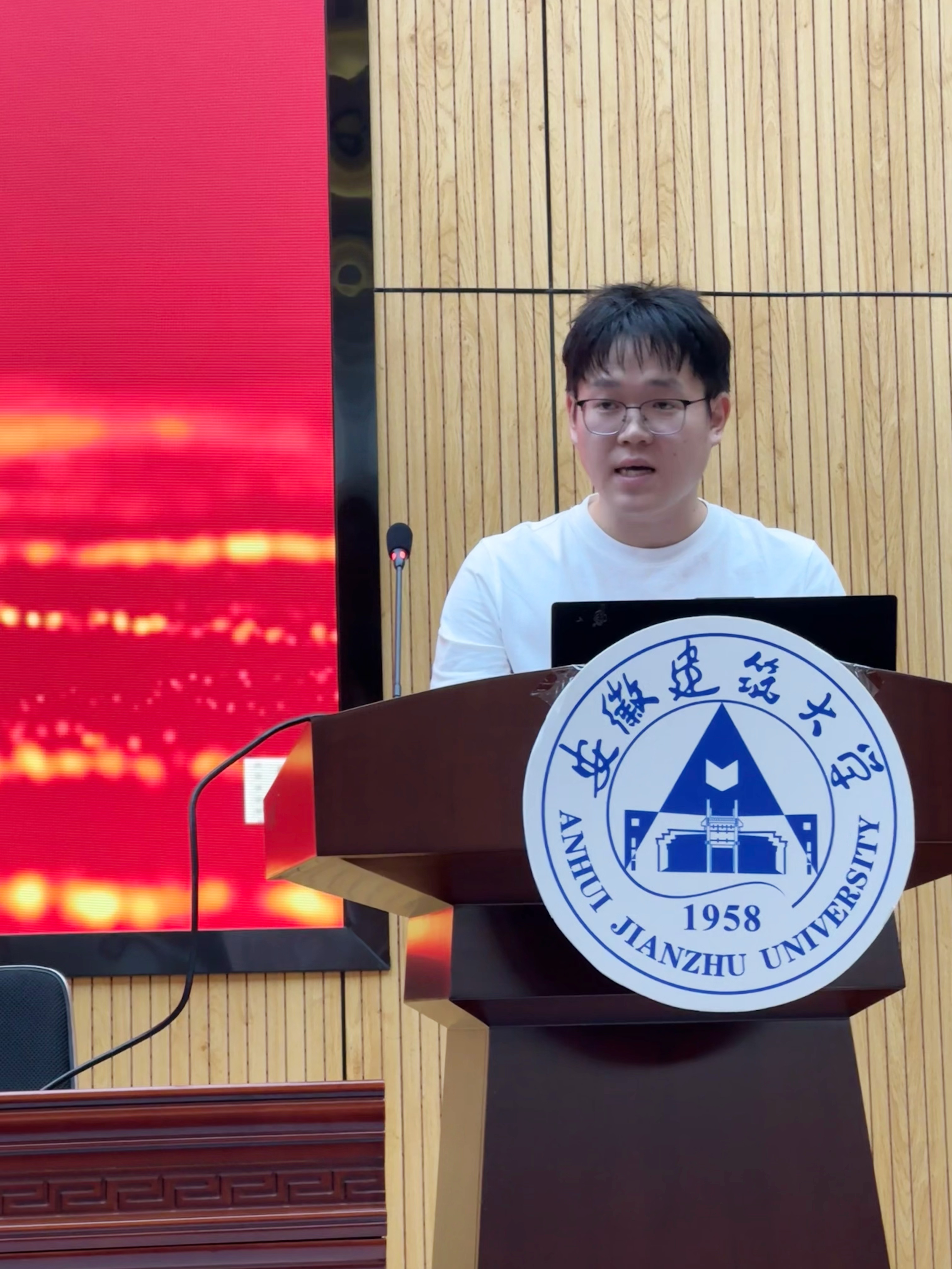 2025级环境工程研究生余大伟代表全体新生表达了对未来研究生生活的憧憬,并对未来的大学生活充满了期待。在发言中,他提出了四点主张,与台下全体新生共勉:一是要扎根专业沃土,服务国家战略;二是要传承建大精神,砥砺学术品格;三是要融入集体成长,共创美好未来。
