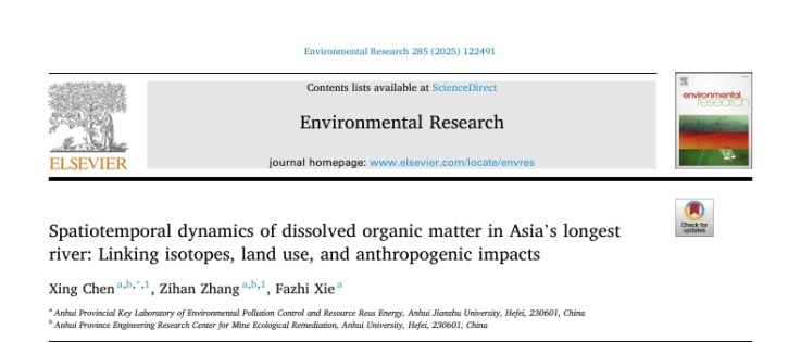 近日,环境与能源工程学院陈星老师在该研究领域取得重要进展,在环境科学与生态学领域知名期刊《Environmental Research》(JCR Q1,影响因子7.7)在线发表了题为“Spatiotemporal dynamics of dissolved organic matter in Asia’s longest river: Linking isotopes, land use, and anthropogenic impacts”的科研论文。beat365官方网站为第一完成单位,陈星老师为第一作者兼通讯作者。