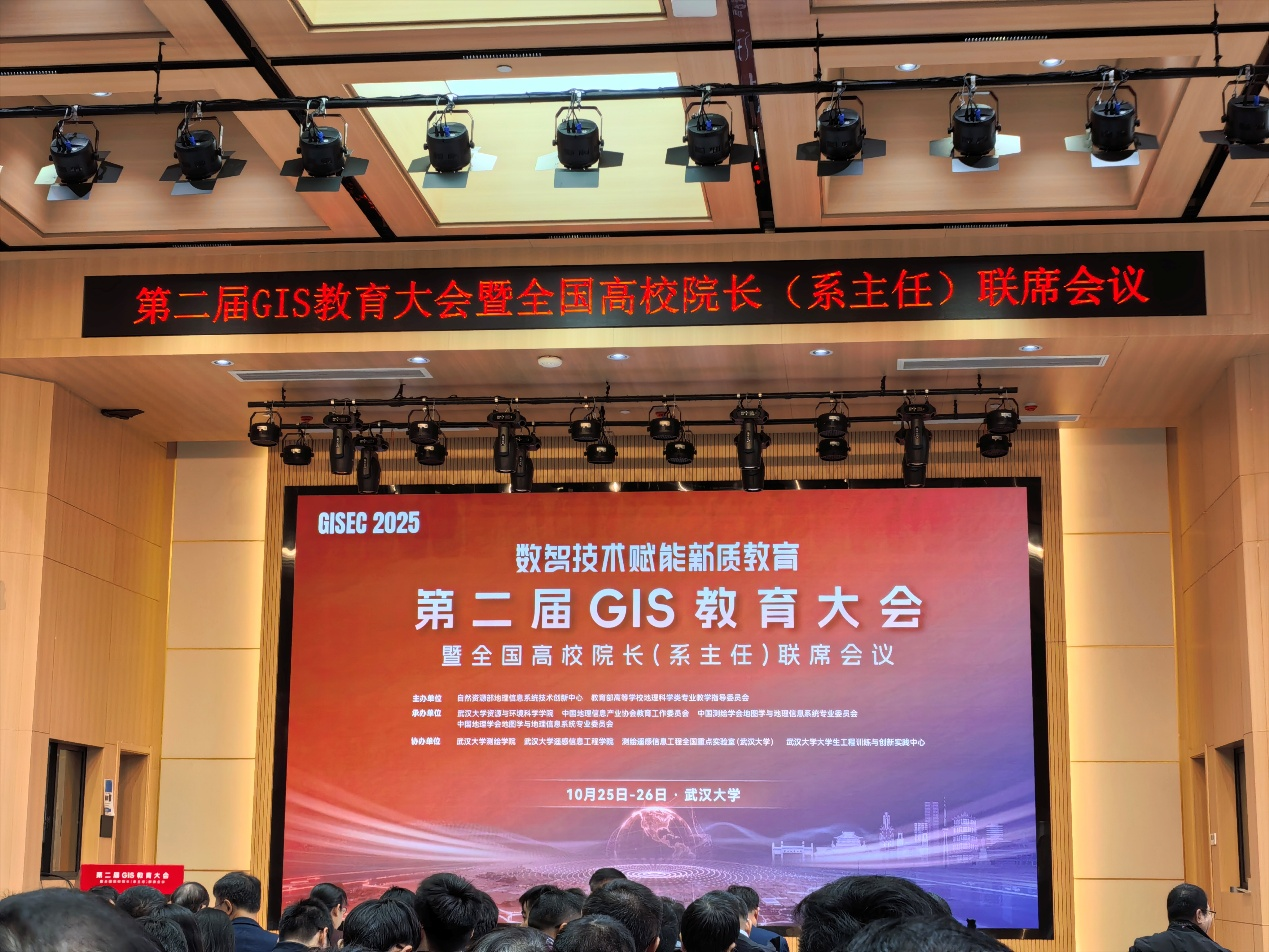 本网讯 10月25日至26日,由自然资源部地理信息系统技术创新中心、教育部高等学校地理科学类专业教学指导委员会联合主办的第二届GIS教育大会暨全国高校院长(系主任)联席会议在武汉大学成功举办。本次大会以“数智技术赋能新质教育”为主题,吸引了来自全国各地的300余位高校GIS专业负责人、骨干教师及地理信息与信息技术领域的企业代表齐聚一堂,共同探讨GIS教育高质量发展的新路径与新方法。环能学院地信专业教师代表参加了此次会议。