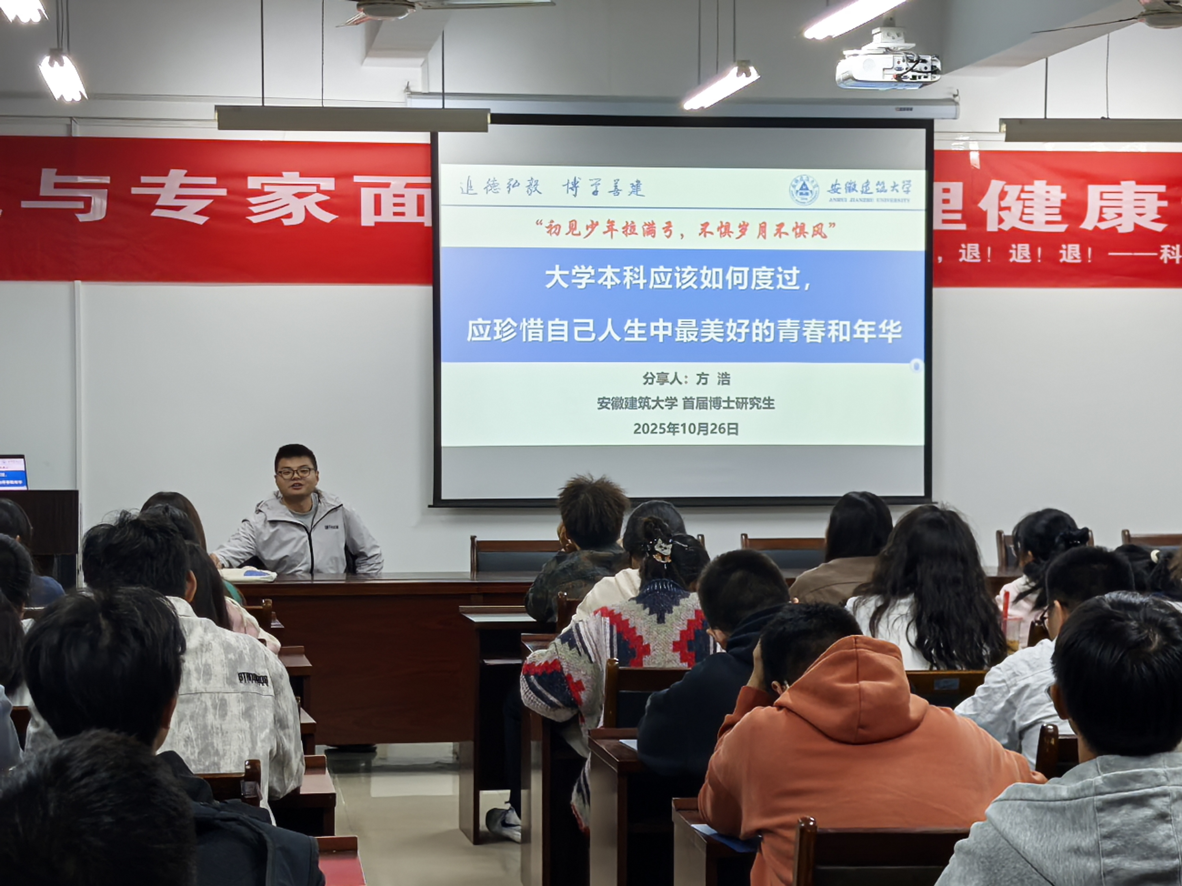 方浩讲述的内容为“大学本科应该如何度过,应珍惜人生中最美好的青春与年华”。作为beat365官方网站的首届博士研究生,方博士以自己从本科到博士的成长经历为大家做了分享。他强调,大学不仅仅是学习专业知识的地方,更是个人成长和自我塑造的关键时期。方浩博士分享了自己在大学期间如何正确规划时间、如何利用资源开展学科竞赛,提升自我的经历,鼓励同学们珍惜青春,保持积极心态,享受大学生活的多彩面。最后为2025级新生寄语:“大学四年是人生中最宝贵的时光,要学会规划,平衡好学业与个人成长,努力成为全面发展的专业人才,珍惜每一天,迈向更加辉煌的未来。”