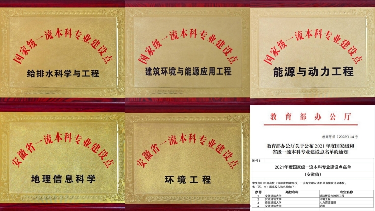 学科布局持续完善。地图制图学与地理信息工程2022年获批学术型硕士学位授权点,进一步优化研究生培养布局。给排水科学与工程、建筑环境与能源应用工程专业分别于2023年、2024年通过住建部第四次专业教育认证(评估),地理信息科学与环境工程专业2020年获批安徽省一流专业建设点,2022年新增消防工程、2025年新增新能源科学与工程本科专业,学科专业布局更贴合国家战略与市场需求。