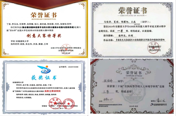 实践育人成效显著。学院以学科竞赛为抓手,搭建多层次、广覆盖的实践创新平台,鼓励学生参与科研实践与学科竞赛,累计获省级以上奖项168项,在全国大学生环境设计大赛、全国高校给排水科学与工程专业本科生优秀毕业设计(论文)评选等赛事中屡获佳绩。环能学子在历届学校运动会中获21次学生团体冠军,凝练出 “环能环能,无所不能” 的拼搏精神。优秀校友辈出,地理信息系统专业韩东成获2025年中国青年五四奖章,给排水科学与工程专业张杨先后获“全国劳动模范”、“全国五一劳动奖章”、“全国住建系统劳动模范”等多项荣誉。