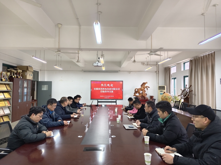 本网讯 1月27日,安徽国茂机电设备有限公司总经理张翔一行6人来到环能学院座谈交流,学院院长谢发之及相关专业系教师参加交流座谈。