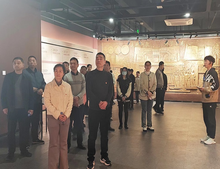 随后,一行人前往校史馆开展参观活动。在讲解员的解说下,看到了学校创办以来发展至今的风风雨雨,感受它的脉搏,感慨于它的质朴、稳健、厚重。“进德、弘毅、博学、善建”,回首校史,我们将持续发扬建大精神,为学校的高质量发展添砖加瓦。