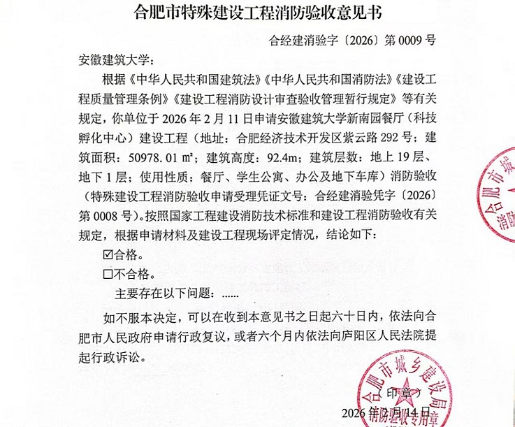 本网讯 近日,学校后勤基建处传来喜讯,新南园餐厅(科技孵化中心)消防验收于2月14日顺利通过,标志着该项目向正式交付使用迈出关键一步。与此同时,校园餐饮保障、基建工程建设等各项工作同步高效推进,后勤服务保障能力持续提升。