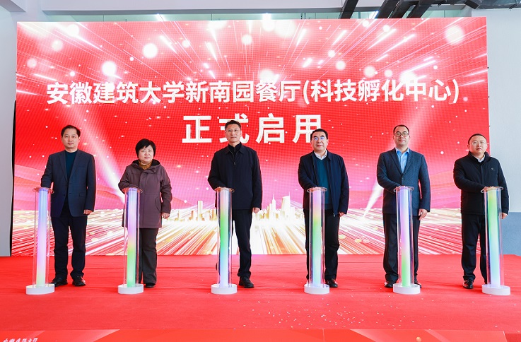 本网讯 3月2日上午,学校隆重举行新南园餐厅(科技孵化中心)启用仪式。校领导马文革、蔡国军、李早、杨科、黄多能、高跃峰出席仪式。各参建单位、餐饮企业负责人,校属各部门、教学单位负责人及师生代表参加仪式。仪式由校党委副书记、校长蔡国军主持。