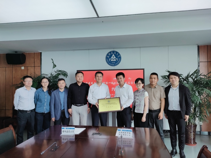 马文革向戚军武赠送捐赠纪念奖牌,双方代表签订《智能一体化控制器及后台系统捐赠协议》。