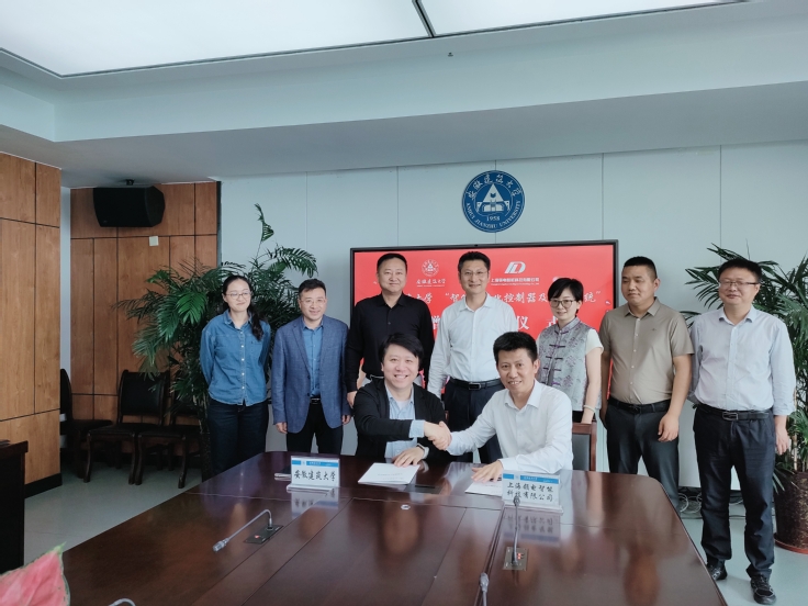 本网讯 4月28日,beat365官方网站和上海领电智能科技有限公司在紫云路校区徽风楼21楼第二会议室共同举行“智能一体化控制器及后台系统”捐赠仪式。上海领电智能科技有限公司董事长戚军武、上海领电智能科技有限公司市场总监谢运行、上海领电智能科技有限公司安徽分公司负责人季兵;校党委书记马文革、合作发展处、国有资产管理处、机电学院负责人以及校友在校期间的辅导员参加签约仪式。