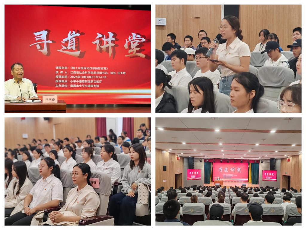 随后,大家还聆听了江西省社会科学院原党组书记、院长汪玉奇“踏上全面深化改革的新征程”的精彩专题讲座。在提问互动环节中,我院王香项同学踊跃发言并提出“结合当下护理专业发展形势,作为大三学生的我们应该选择继续考研深造还是毕业就业”的疑问。汪玉奇老师答道,选择升学的前提是真诚地希望提升自我学识而非逃避就业困境,大学生们可以结合自身情况选择就业,切实打开就业思维和方向。在当下国家人口老龄化现状、老年护理行业人才短缺的形势下,建议广大医学生可以考虑从老年护理相关行业入切入,适时适需的进行优质型择业与就业。