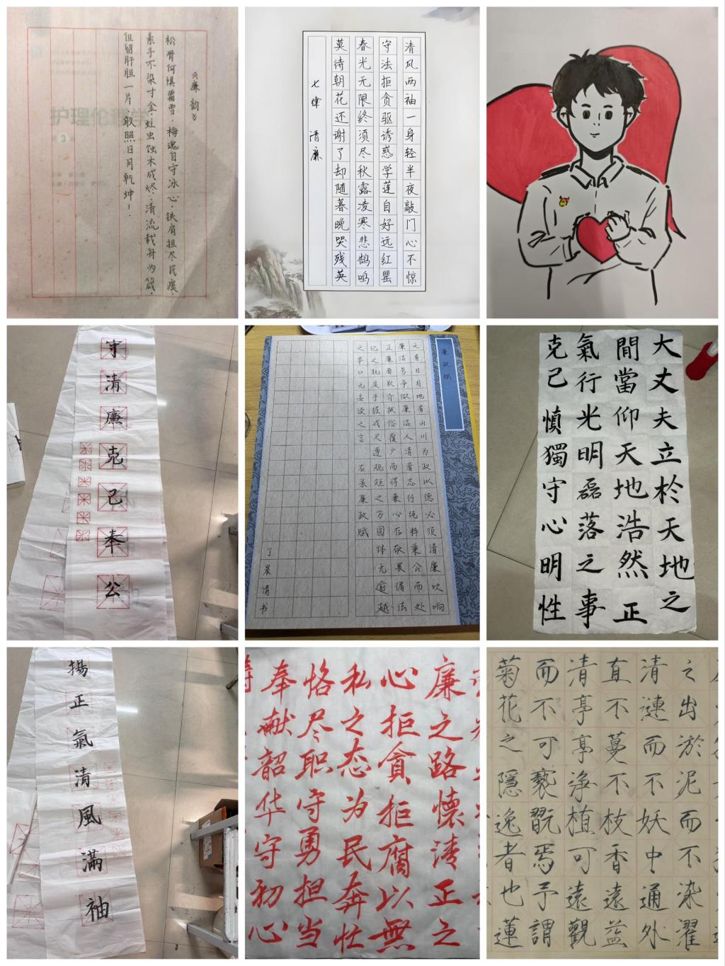 此次比赛以“廉洁”为主题,面向学院全体师生征集作品,共收到书法、绘画作品59份。参赛者围绕廉政诗词、格言警句、象征性意象等进行创作,既有笔力雄健的书法作品,也有寓意深刻的彩绘画,生动展现了廉洁文化的丰富内涵。经层层筛选评比,全院共评出一等奖两名,二等奖三名,三等奖五名。