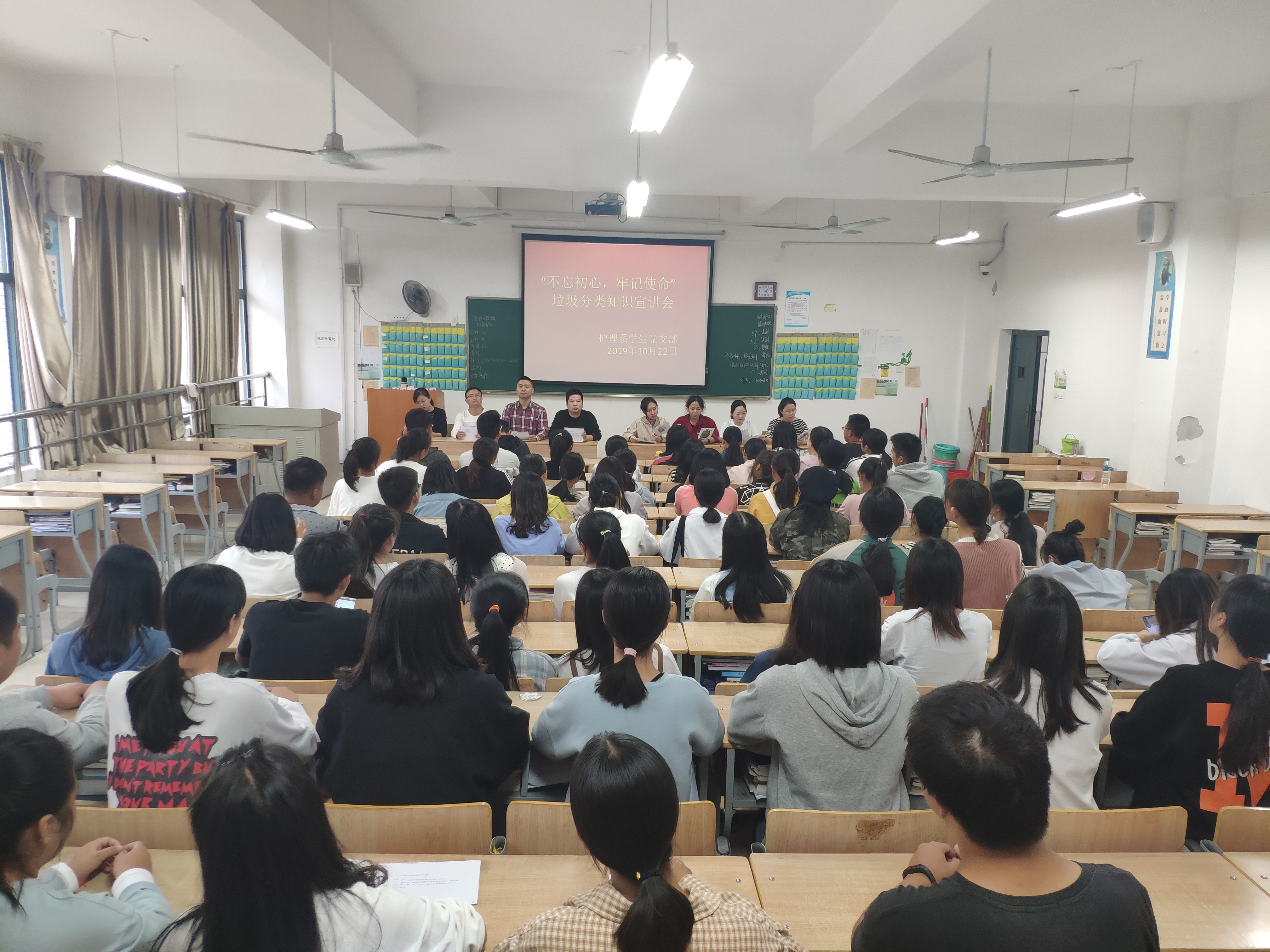 2019年10月22日下午16:00护理系学生党支部在教学楼306教室举办“垃圾分类巾帼先行”活动,共8支队伍进入决赛。