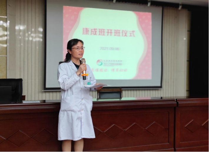 刘艳秋院长表示举办“康成班”是产教融合背景下医院与学校协同育人的一次全新尝试,希望各位同学珍惜本次学习机会和交流平台,表示今后省妇保将会继续支持康成班的建设,不断开创院校合作新局面。