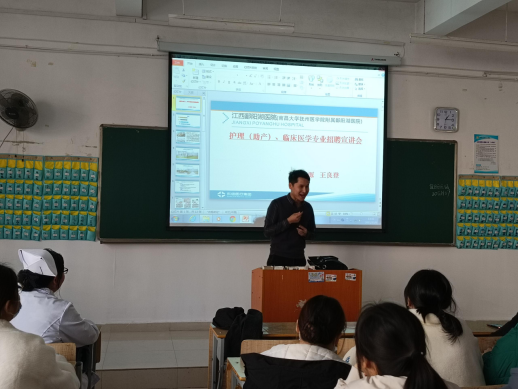 会上,鄱阳湖医院人力资源部王良登主任通过PPT展示、面对面交流等方式简要介绍了医院基本概况、职业发展方向、人员需求以及福利待遇等。介绍完毕后,王主任针对参会同学提出的问题进行逐一解答,并详细讲解招聘条件及要求。会议结束后,该医院收取了意向应聘者投递的简历,后期将对简历筛选通过的应聘者进行面试。