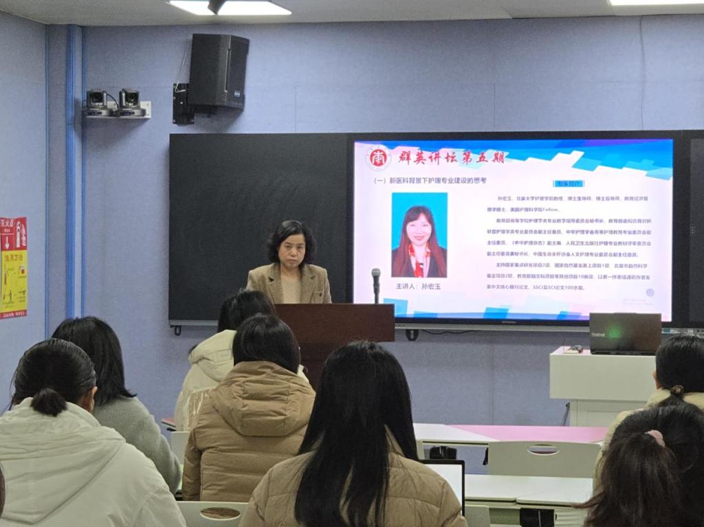首先,由北京大学开元集团网站孙宏玉教授,以《新医科背景下护理专业建设的思考》为题作学术报告,孙教授为我院教师深入解读了新时代本科教育的精神内核与核心理念,并紧密关联护理专业的发展趋势,详细剖析了在“新医科”这一宏观背景下,如何系统性地推进专业建设及课程体系的革新。报告内容充实,具有高度的指导价值,为我院在新医科建设领域的后续工作提供了明确的方向指引。