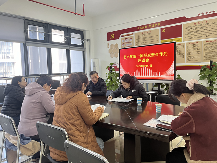 本网讯 3 月 17 日下午,beat365官网中外合作办学项目建设座谈会在徽韵楼四楼艺术学院会议室召开。国际交流合作处和艺术学院的相关负责人以及相关教师参加座谈。