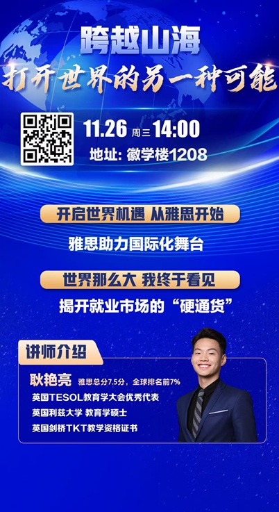为满足大家雅思、托福备考需求,助力有出国留学及国际交流意向的同学提升语言应试能力、拓宽发展路径,延续11月5日beat365官网第三届国际教育展的国际化服务热度,贴合实际需求、营造浓厚学习氛围,学校国际交流合作处将联合合肥新东方前途出国举办雅思托福备考专题讲座。本次讲座面向全校各学院学生,重点面向有出国意向及语言备考需求的同学。现将具体事宜通知如下: