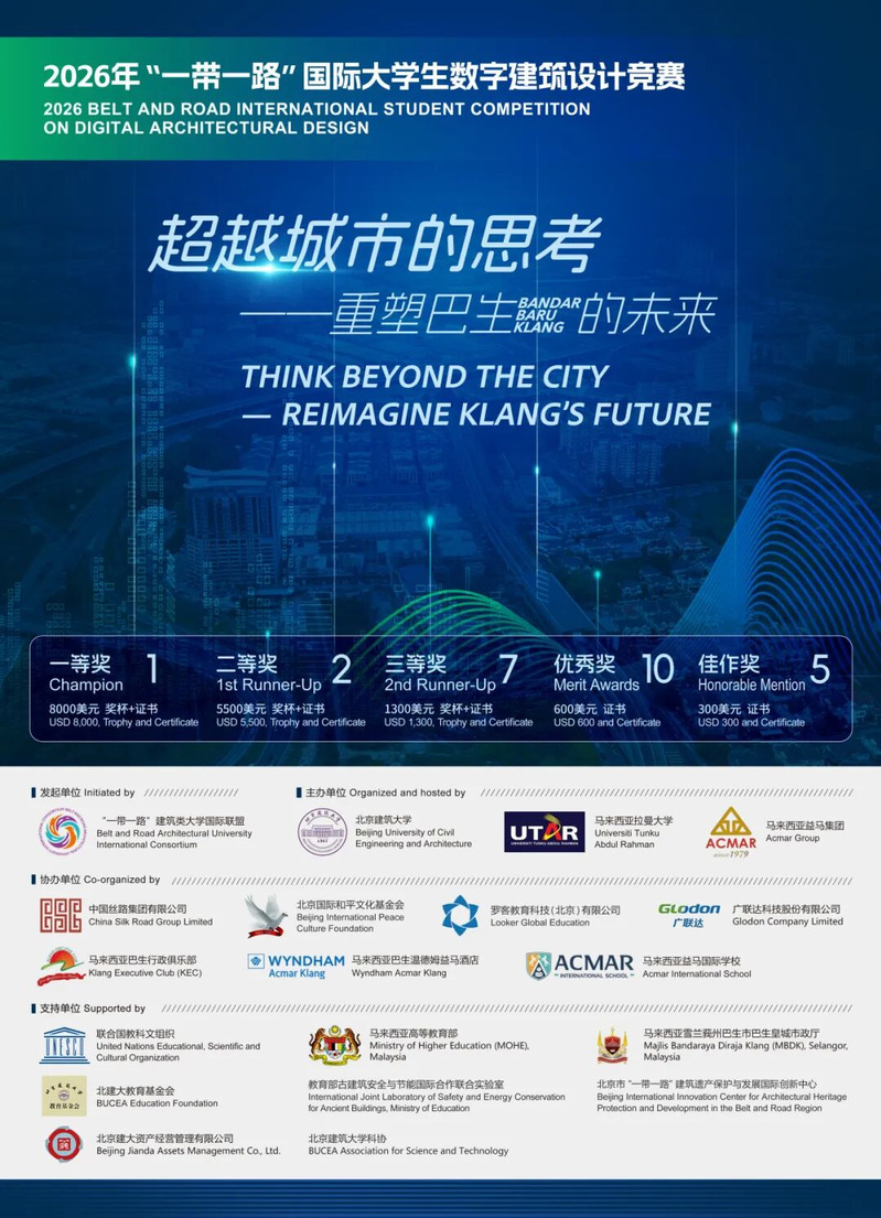 为了增进各国大学生之间的学术文化交流,培养大学生科技创新精神和实践能力,现组办2026 “一带一路”国际大学生数字建筑设计竞赛。