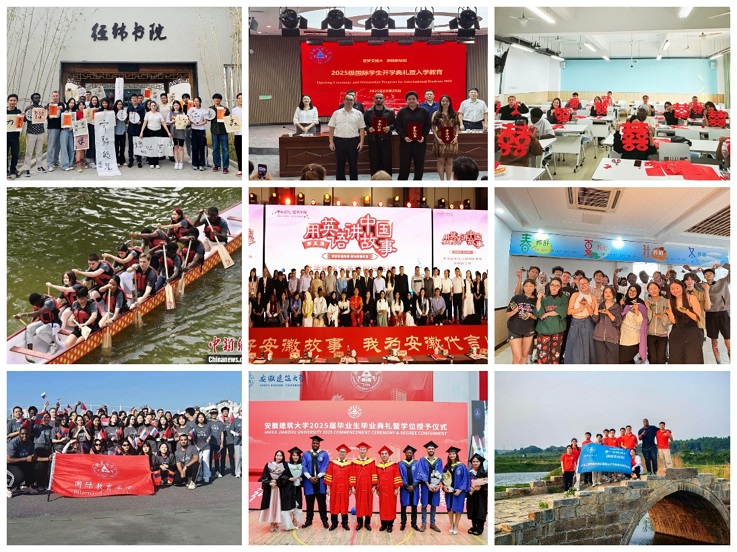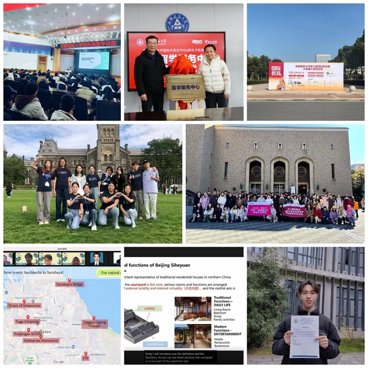 紧扣学校学科建设核心目标,以搭建高水平国际学术平台为抓手,为学科高质量发展注入国际智慧。主办、协办“城市智能与应用”“建筑节能”等高水平国际学术会议10余场。校领导受邀参加香港理工大学与香港科技大学共建“沿海城市气候韧性全国重点实验室”启动仪式、教育部中乌教育大会及中韩作品联展活动,开展高层次学术交流与合作。联合重庆大学及乌兹别克斯坦相关高校申报国际科研合作项目,推动建筑领域国际科研合作实质性突破。《徽州龙舟》课程及徽风龙舟国际文化创研基地,双双入选教育部来华留学生“了解中国”优秀课程及中外青少年社会实践活动基地,成为安徽省少数同时斩获两项国家级认定的高校之一。