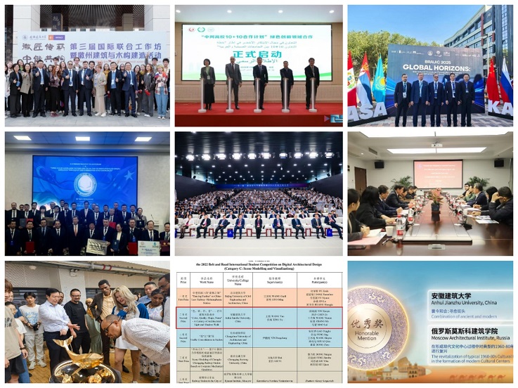 主动服务国家对外开放大局,深度融入“一带一路”教育行动。与俄罗斯下诺夫哥罗德国立建筑与土木工程大学连续举办三届国际联合设计工作坊暨建筑设计作品展,中俄合作形成品牌效应。成功获批教育部“中阿高校10+10计划”绿色创新领域中方成员高校,与阿联酋迪拜迪克集团签署共建中东研发基地战略合作协议,率先开启中阿建筑领域绿色可持续发展合作新篇章。深度参与“一带一路”建筑类大学国际联盟建设,与印度尼西亚泗水理工学院、哈萨克斯坦教育集团建立友好合作关系,连续五年组织师生参加“一带一路”国际大学生数字建筑设计竞赛,累计斩获一等奖、二等奖、优秀奖及优秀组织奖等多项荣誉,学校在“一带一路”沿线国家的学术影响力持续提升,成为建筑类高校服务国家战略的重要力量。